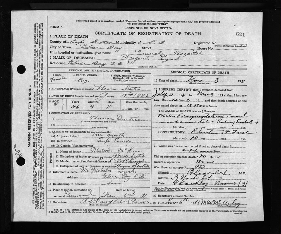 Nova Scotia Archives — https://archives.novascotia.ca/vital-statistics/death/?ID=254109