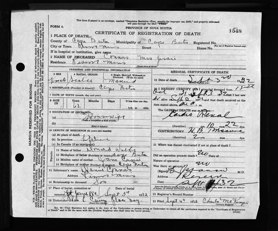 Nova Scotia Archives — https://archives.novascotia.ca/vital-statistics/death/?ID=255038