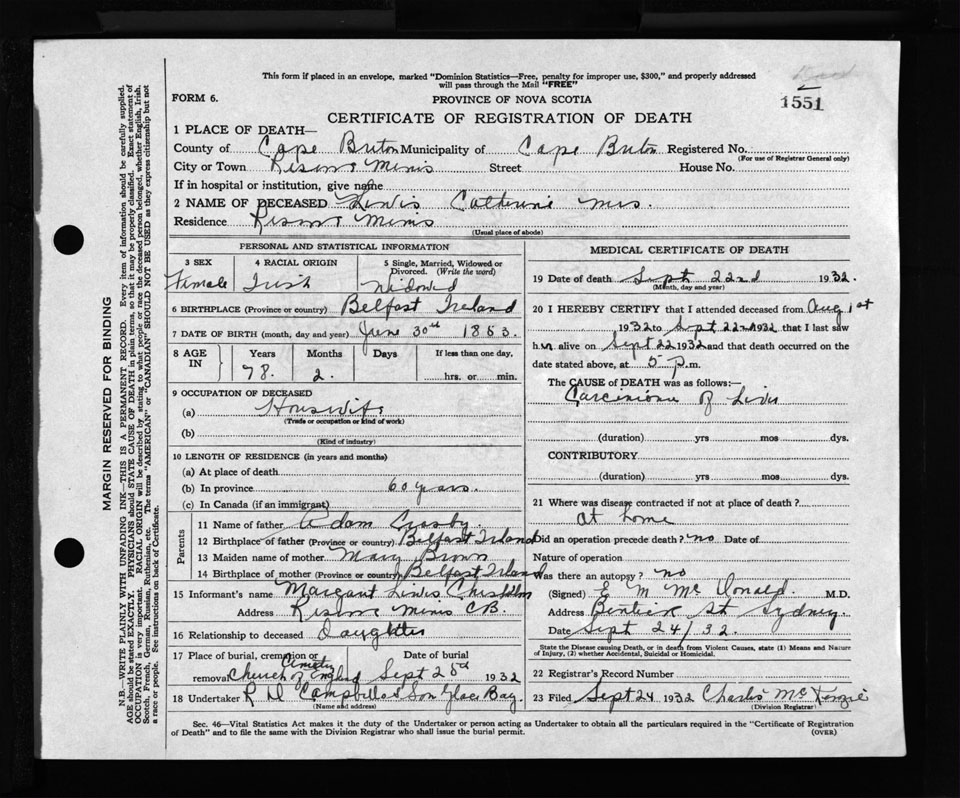 Nova Scotia Archives — https://archives.novascotia.ca/vital-statistics/death/?ID=255041