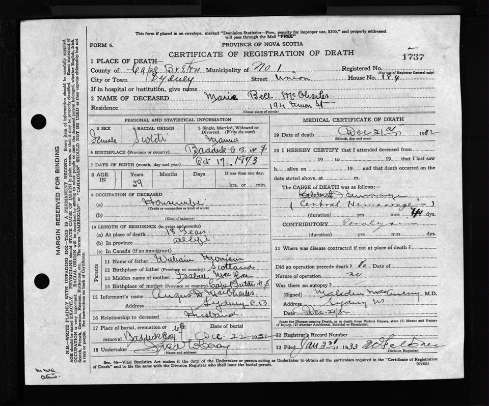 Nova Scotia Archives — https://archives.novascotia.ca/vital-statistics/death/?ID=255227