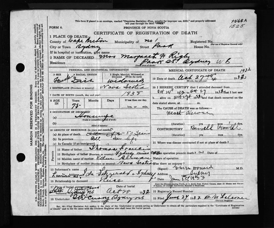 Nova Scotia Archives — https://archives.novascotia.ca/vital-statistics/death/?ID=255315
