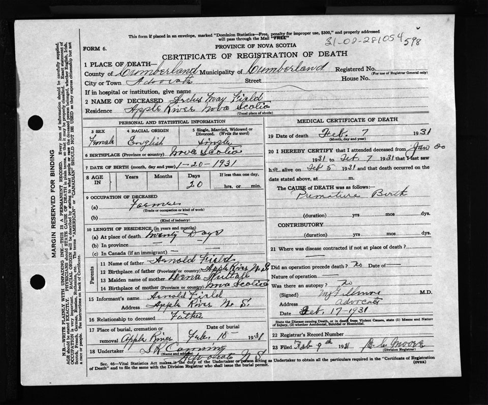 Nova Scotia Archives — https://archives.novascotia.ca/vital-statistics/death/?ID=255926