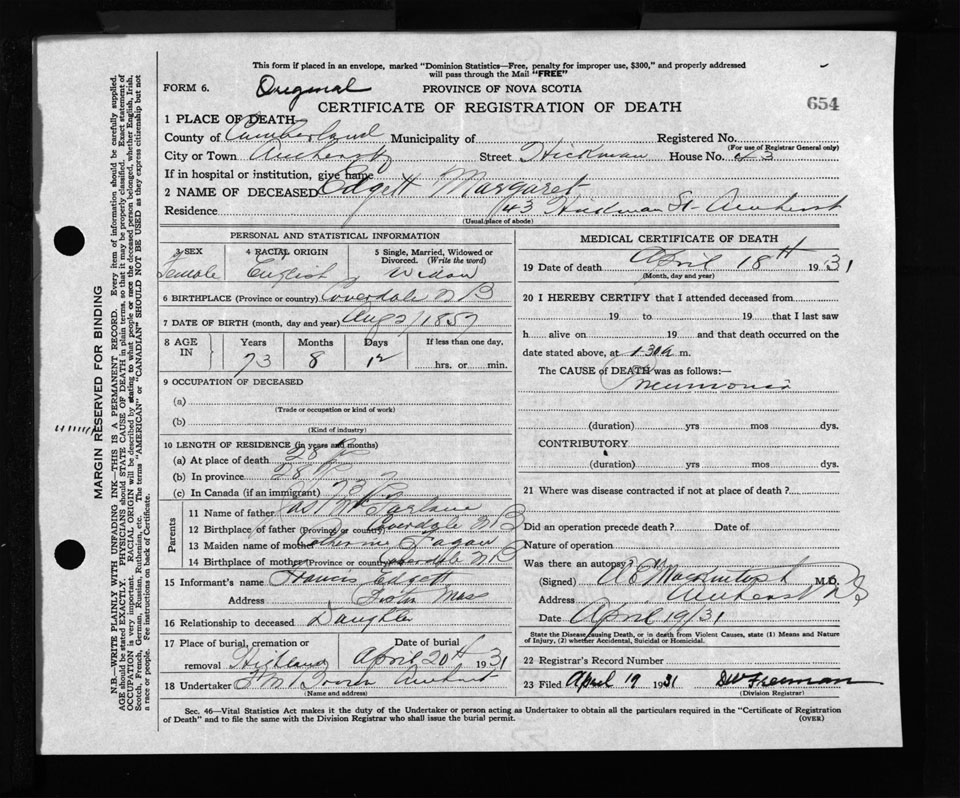 Nova Scotia Archives — https://archives.novascotia.ca/vital-statistics/death/?ID=255982