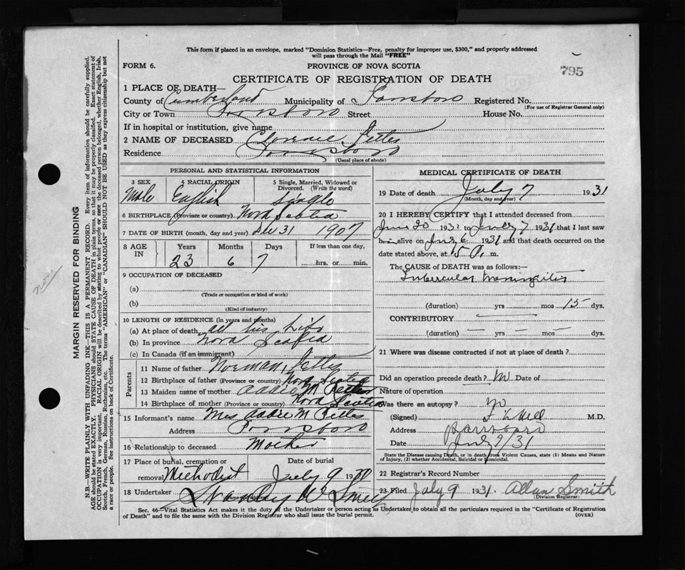 Male Death Registration: Year: 1931 file: 143 number: 795