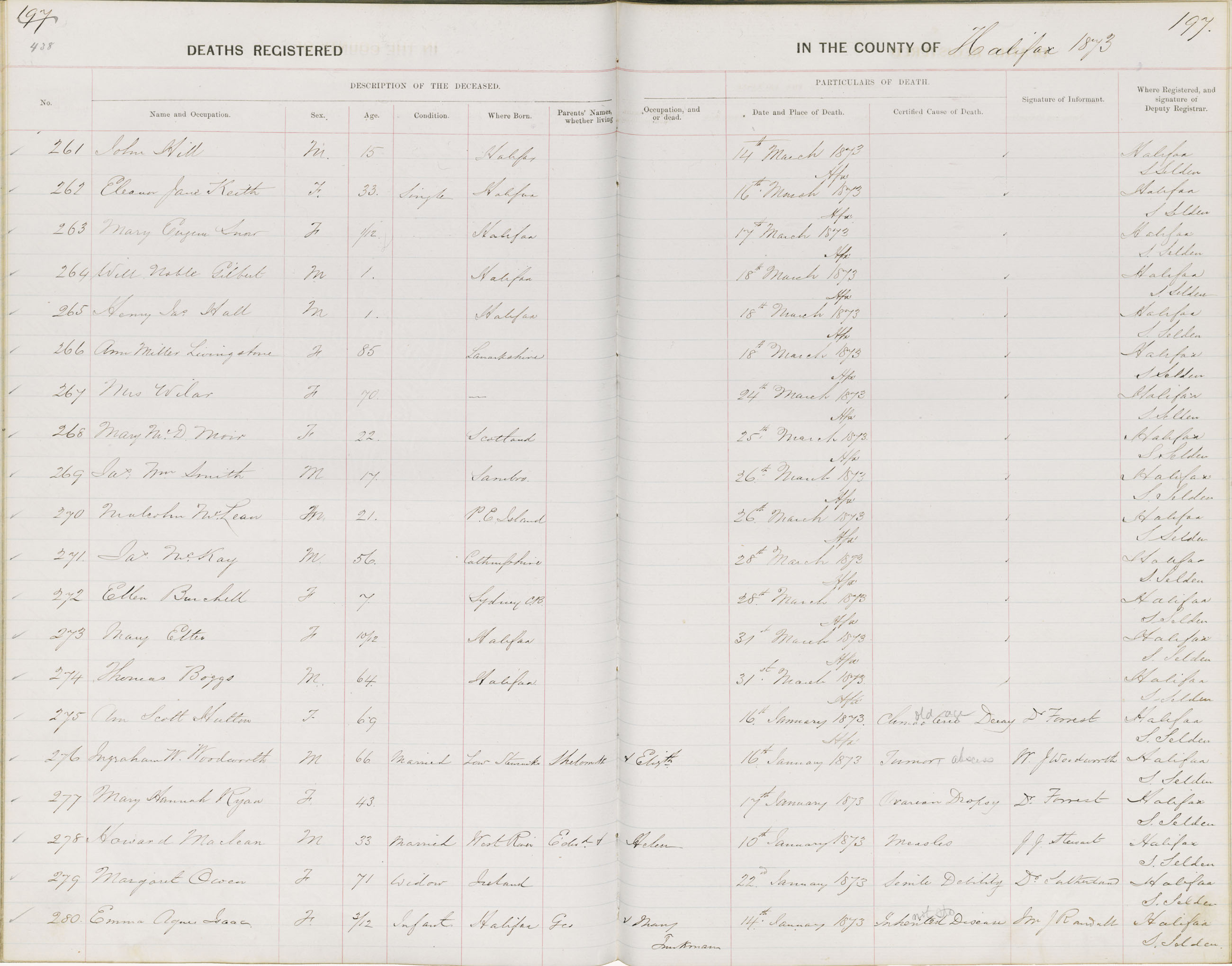 Death Registration: Year: 1873 book: 1808 page: 438 number: 280