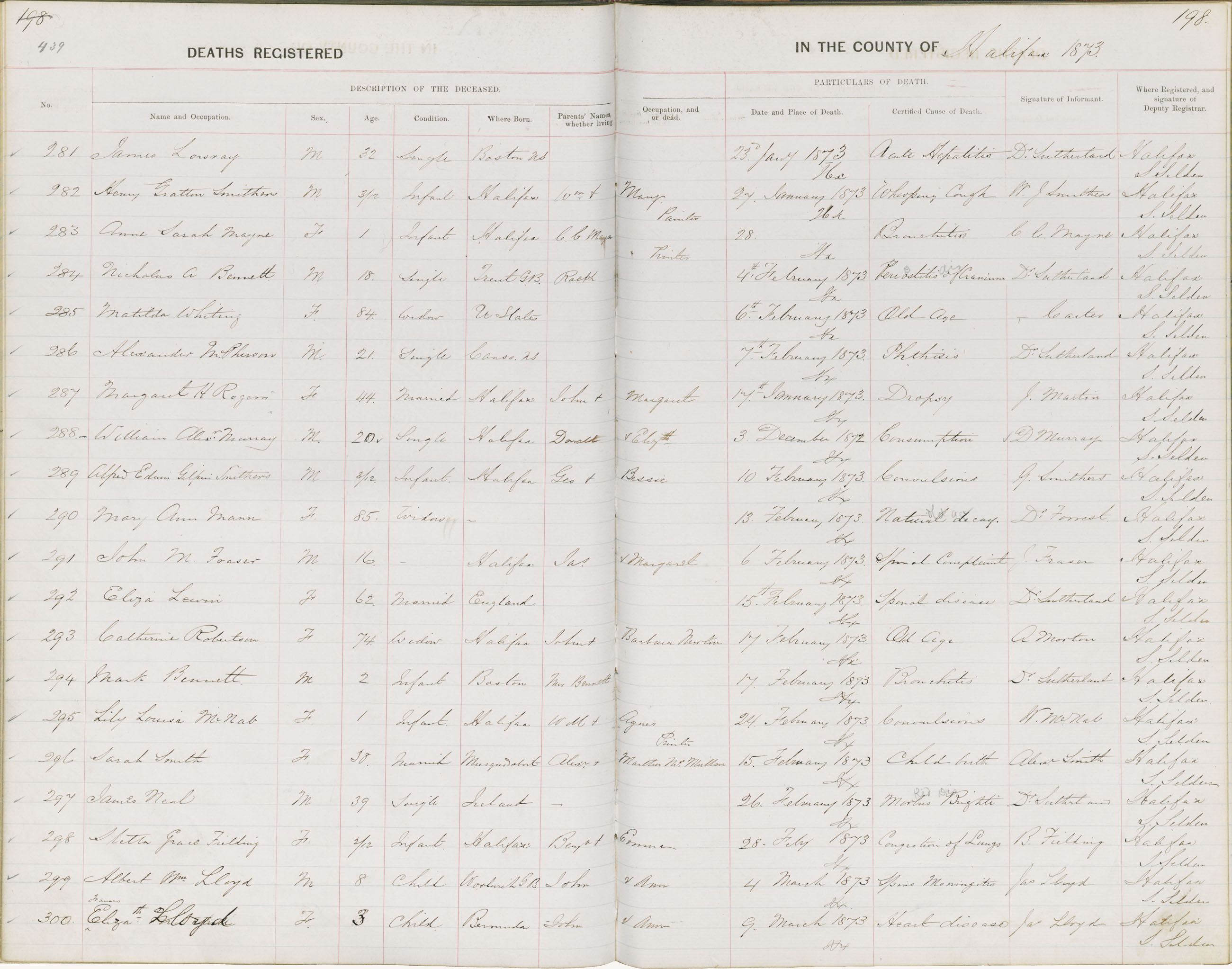 Death Registration: Year: 1873 book: 1808 page: 439 number: 300