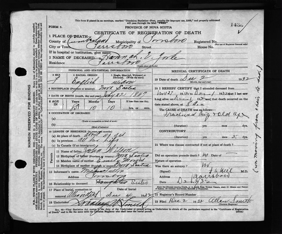 Nova Scotia Archives — https://archives.novascotia.ca/vital-statistics/death/?ID=256765