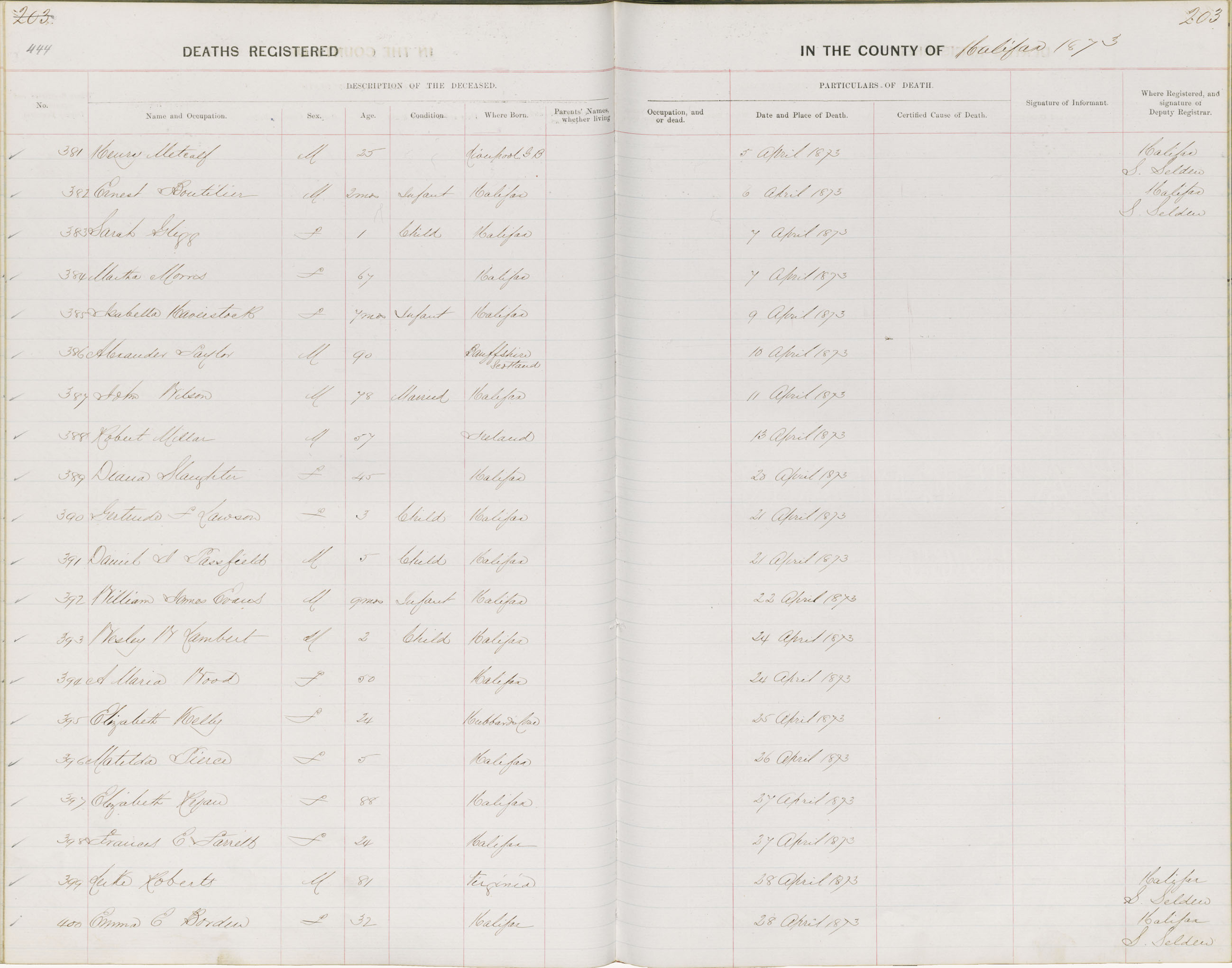 Death Registration: Year: 1873 book: 1808 page: 444 number: 400