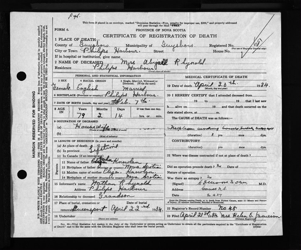 Nova Scotia Archives — https://archives.novascotia.ca/vital-statistics/death/?ID=258025