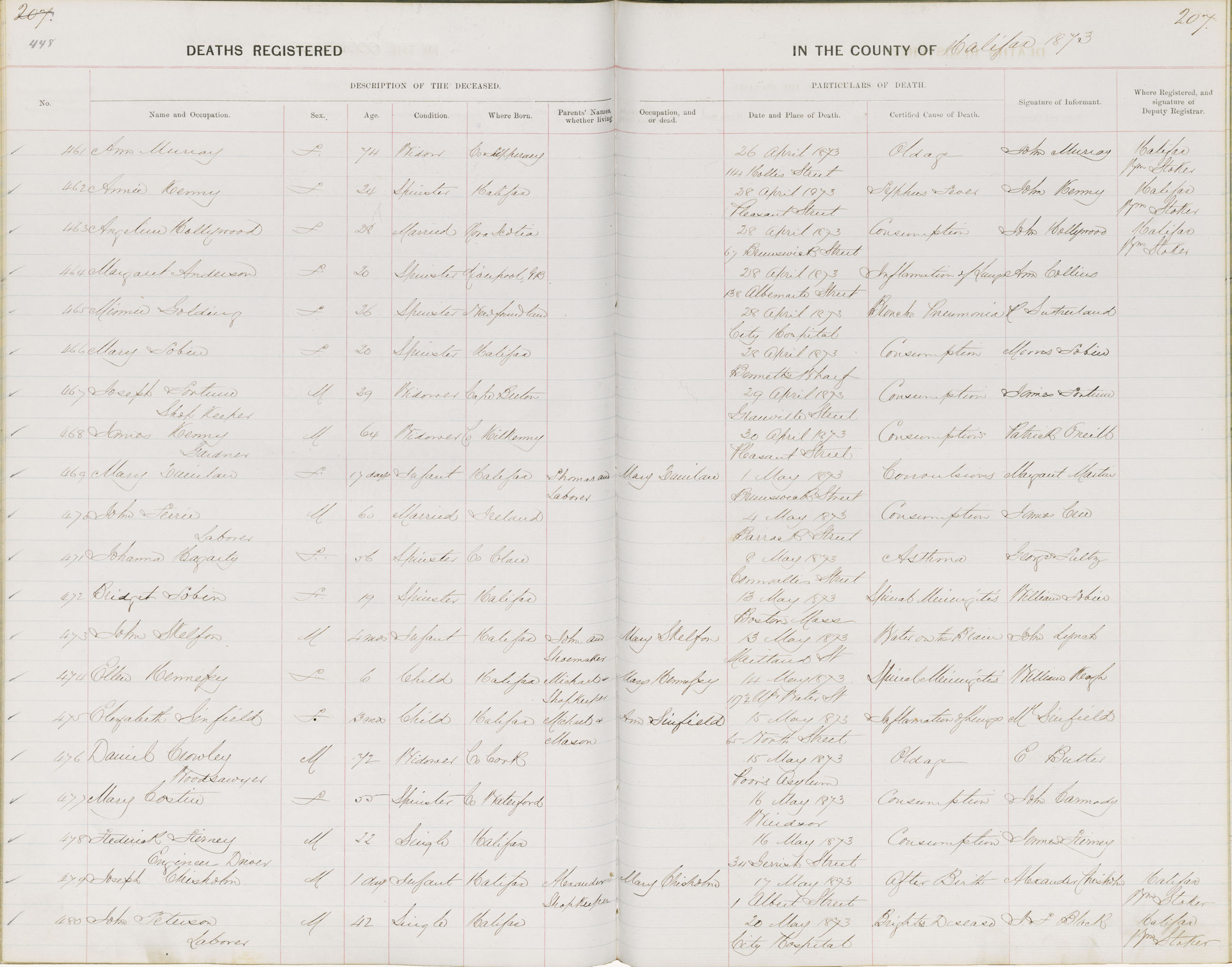 Death Registration: Year: 1873 book: 1808 page: 448 number: 480