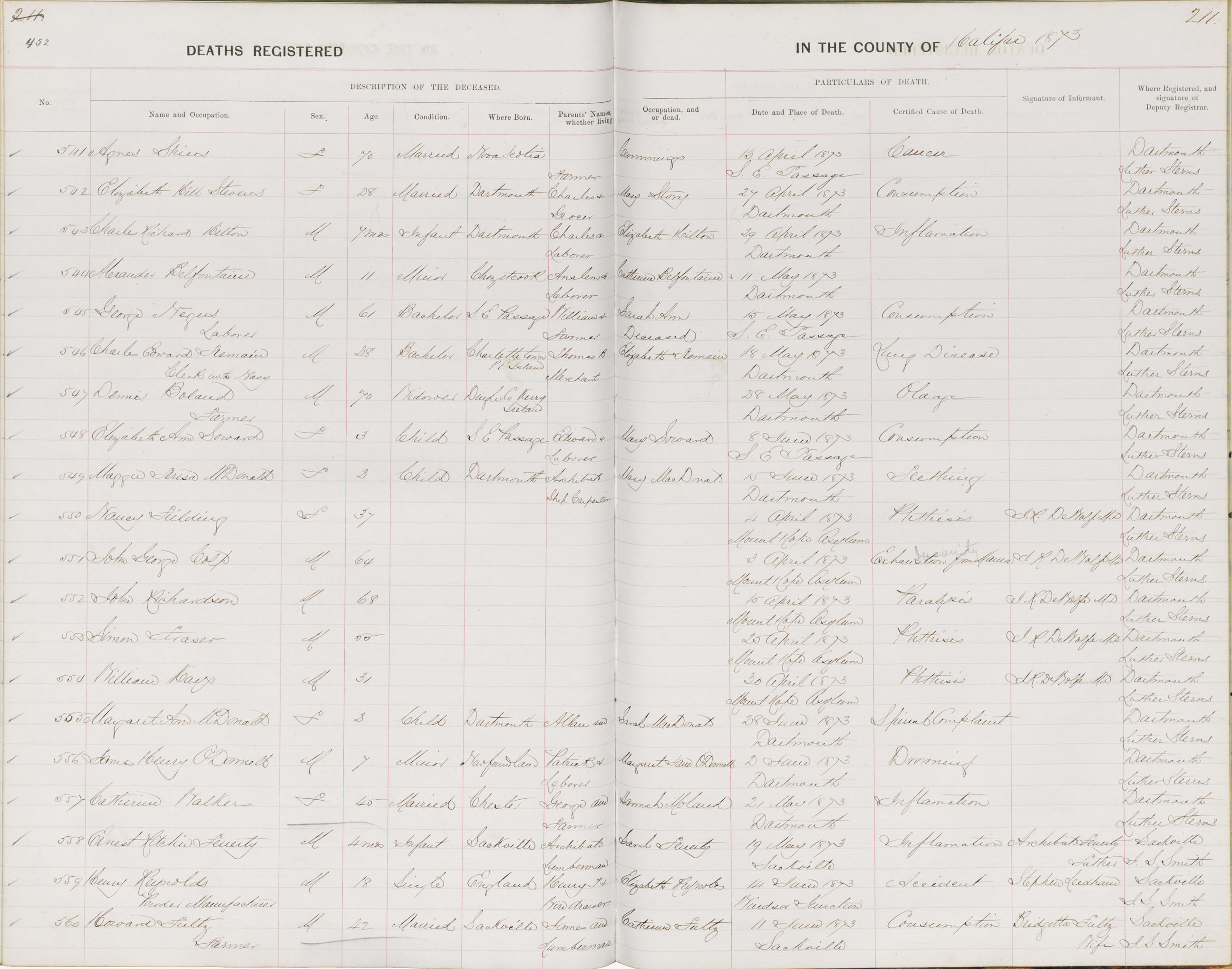 Death Registration: Year: 1873 book: 1808 page: 452 number: 560