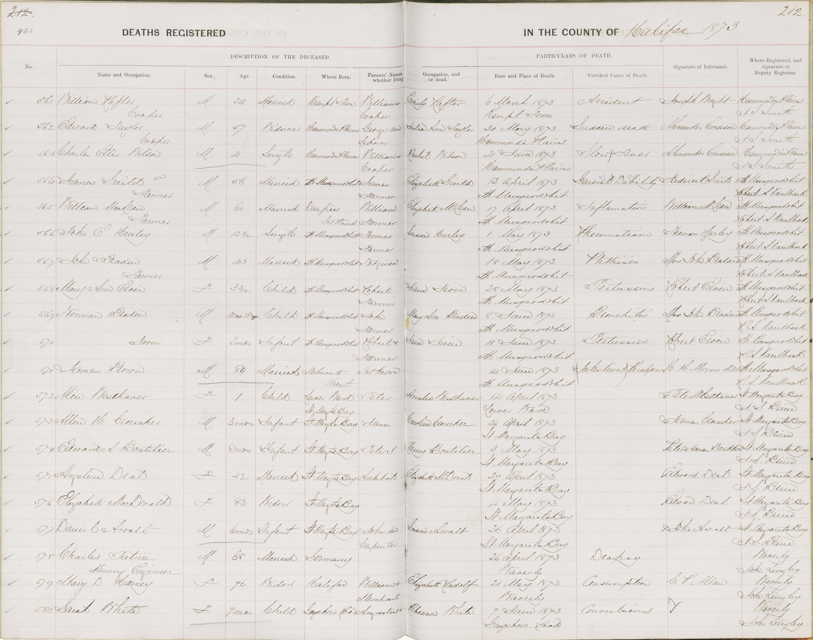 Death Registration: Year: 1873 book: 1808 page: 453 number: 580