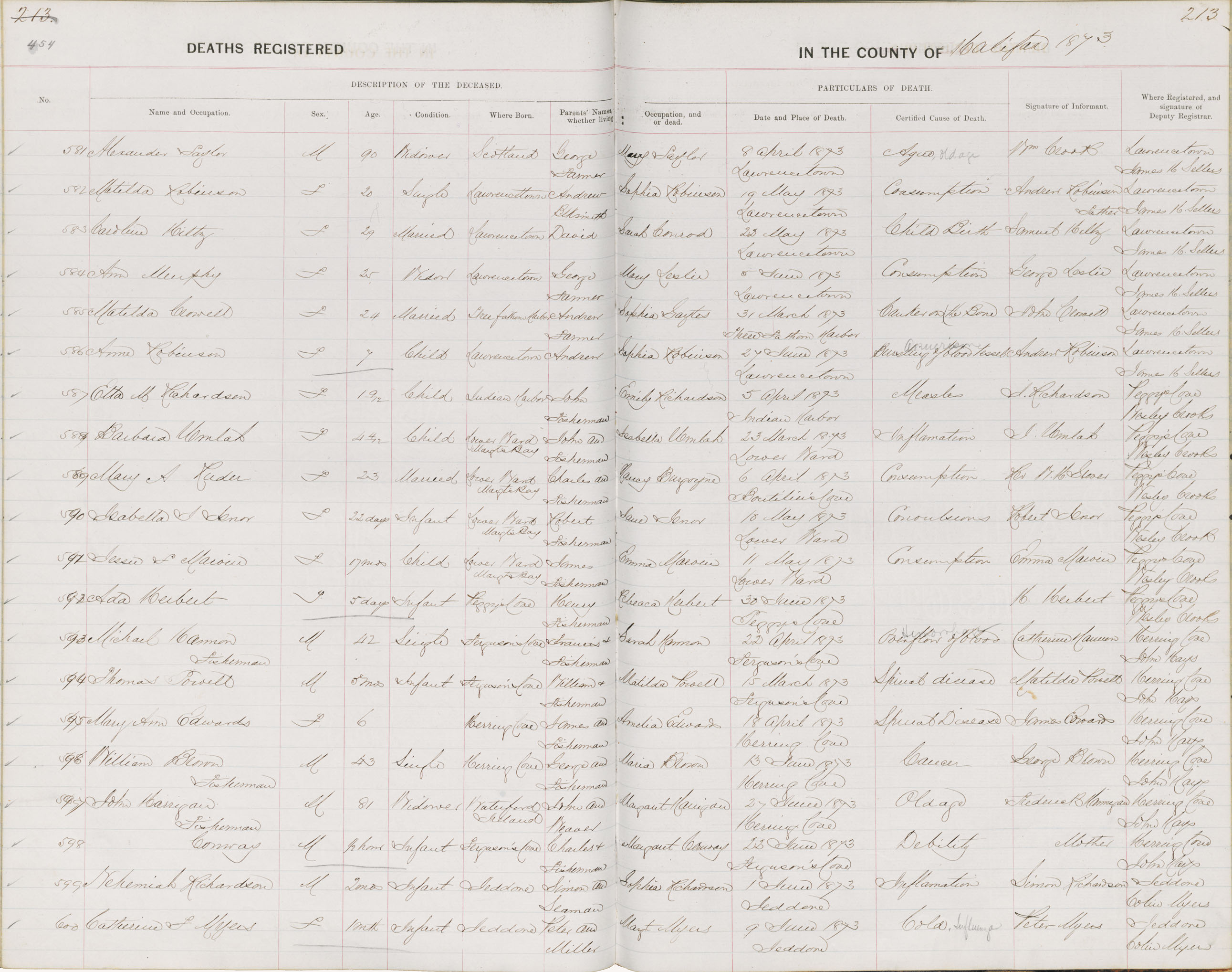 Death Registration: Year: 1873 book: 1808 page: 454 number: 600