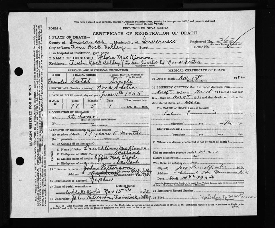 Nova Scotia Archives — https://archives.novascotia.ca/vital-statistics/death/?ID=260375