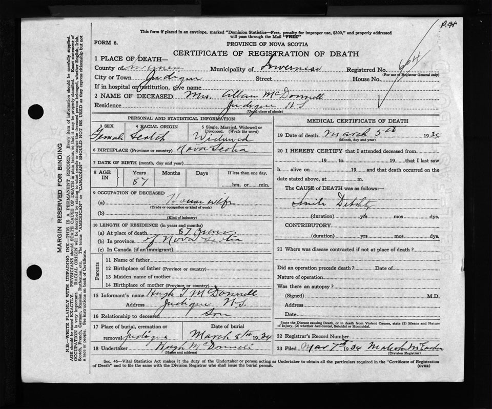 Nova Scotia Archives — https://archives.novascotia.ca/vital-statistics/death/?ID=260713