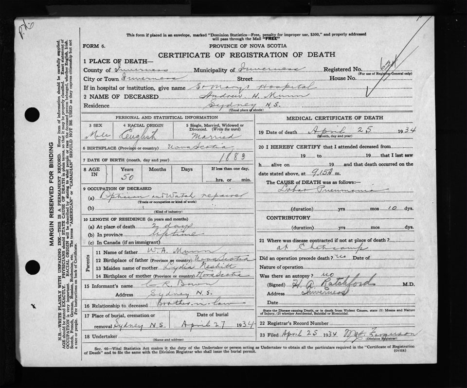Nova Scotia Archives — https://archives.novascotia.ca/vital-statistics/death/?ID=260733