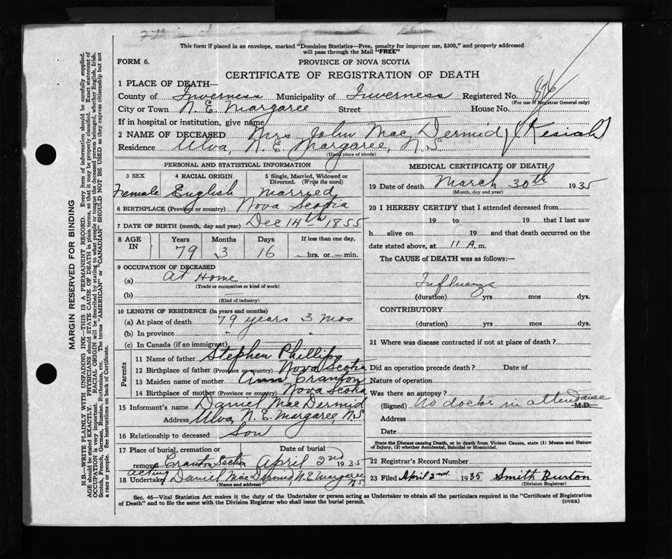 Nova Scotia Archives — https://archives.novascotia.ca/vital-statistics/death/?ID=260983