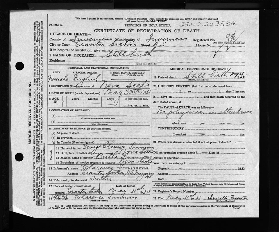 Nova Scotia Archives — https://archives.novascotia.ca/vital-statistics/death/?ID=261045