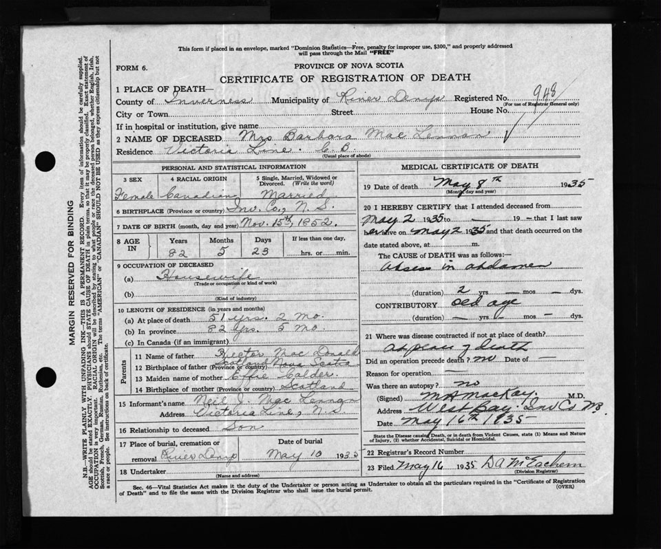 Nova Scotia Archives — https://archives.novascotia.ca/vital-statistics/death/?ID=261055