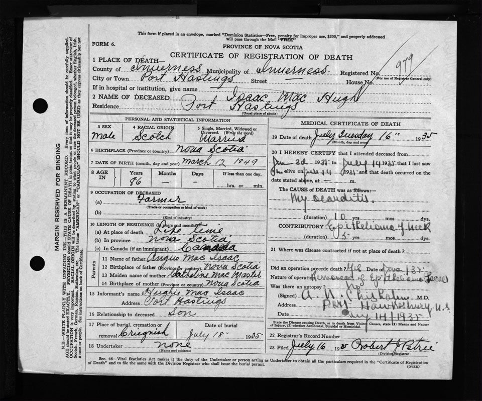 Nova Scotia Archives — https://archives.novascotia.ca/vital-statistics/death/?ID=261086