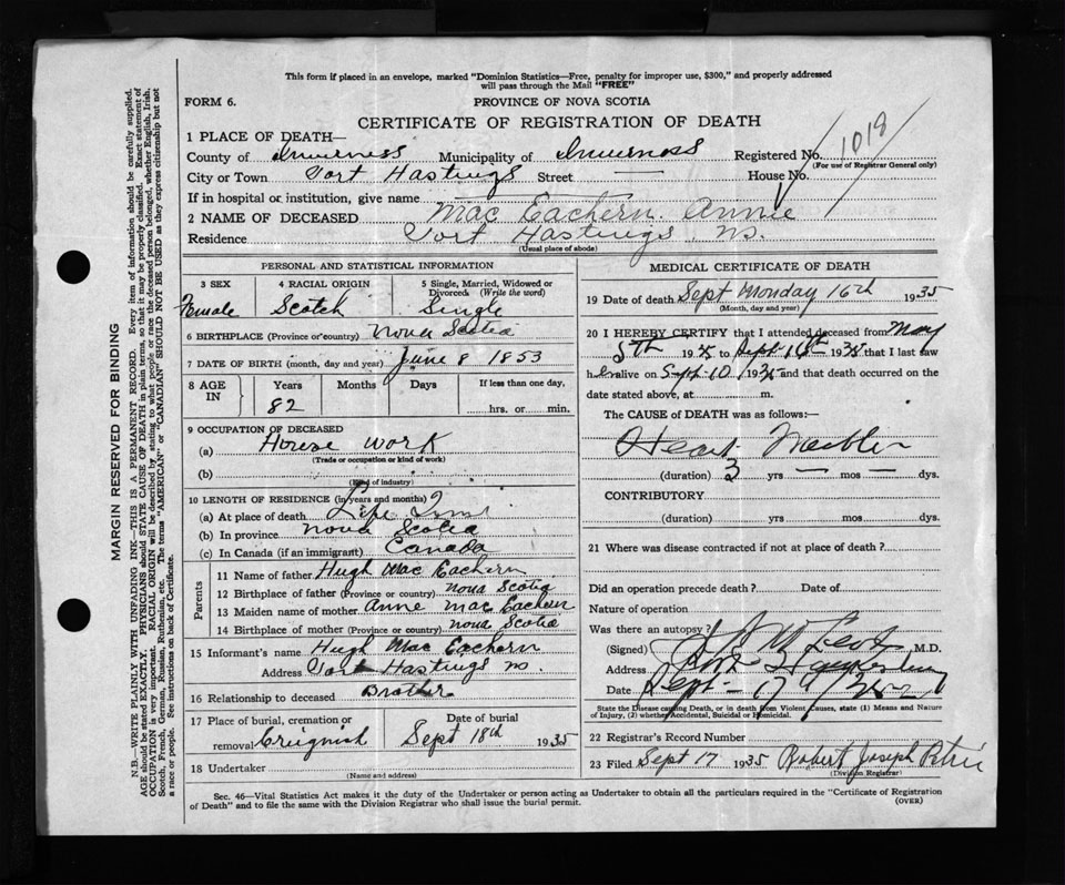 Nova Scotia Archives — https://archives.novascotia.ca/vital-statistics/death/?ID=261125