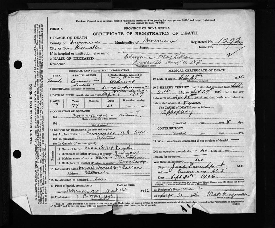 Nova Scotia Archives — https://archives.novascotia.ca/vital-statistics/death/?ID=261398