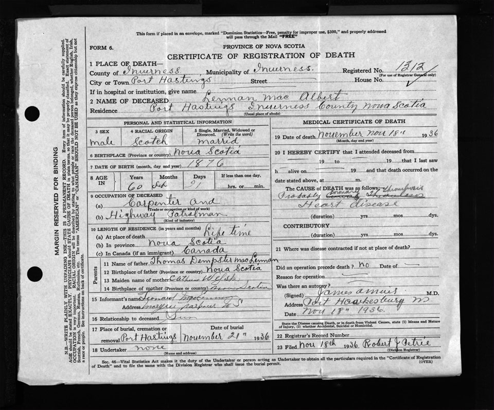 Nova Scotia Archives — https://archives.novascotia.ca/vital-statistics/death/?ID=261418