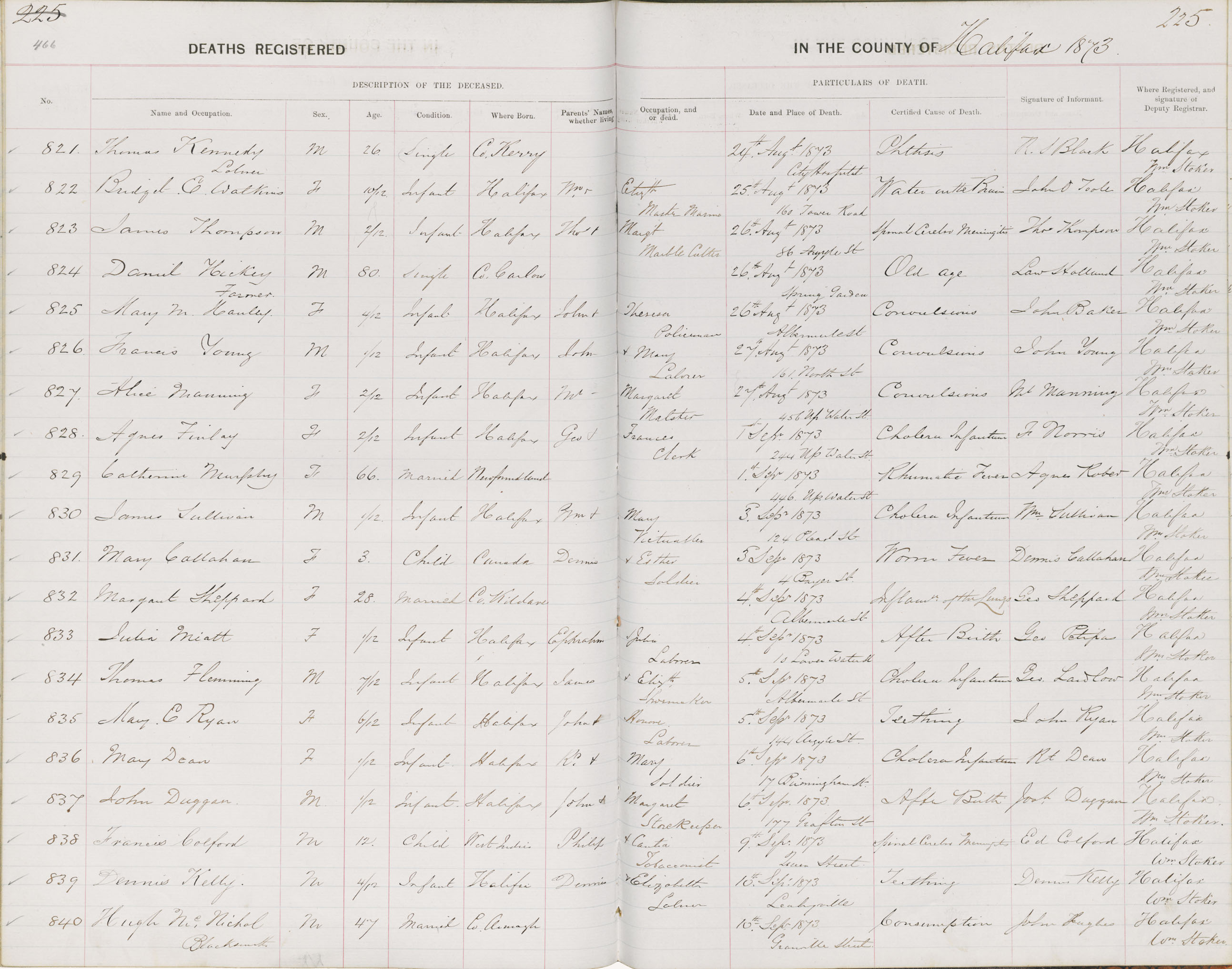 Death Registration: Year: 1873 book: 1808 page: 466 number: 840