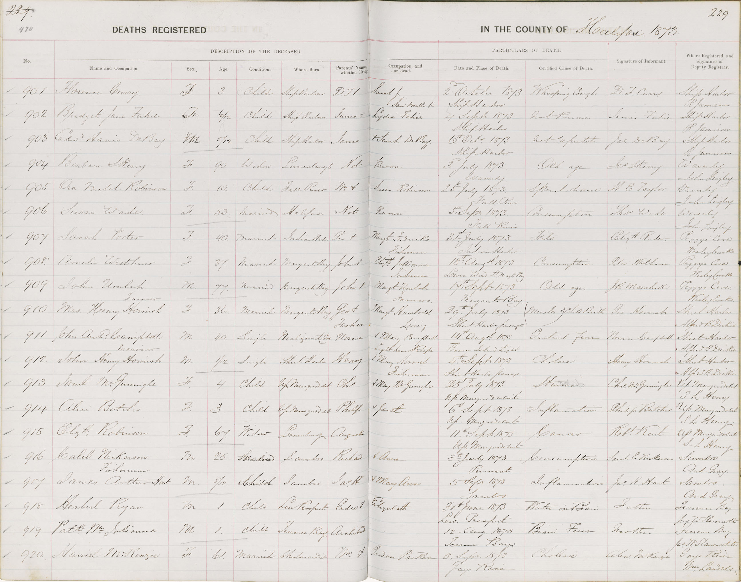 Death Registration: Year: 1873 book: 1808 page: 470 number: 901