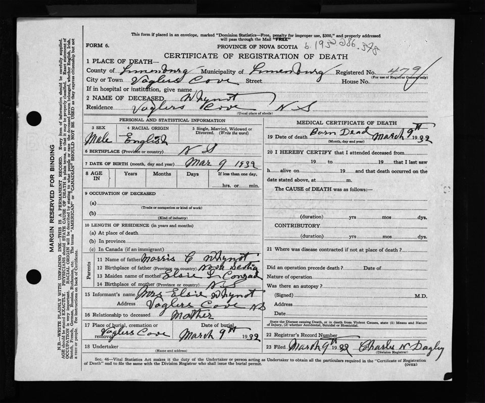 Male Death Registration: Year: 1932 file: 149 number: 479
