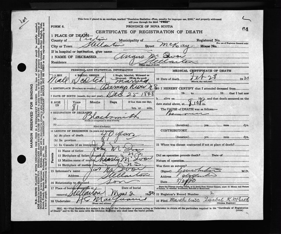 Nova Scotia Archives — https://archives.novascotia.ca/vital-statistics/death/?ID=263765