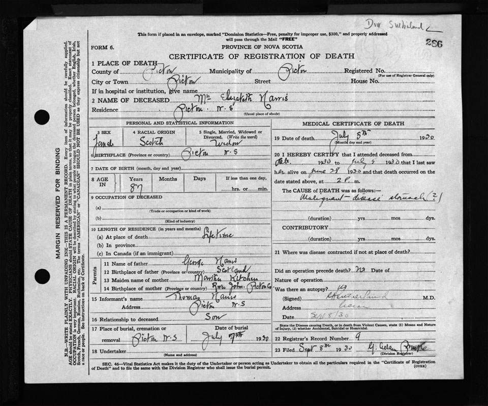 Nova Scotia Archives — https://archives.novascotia.ca/vital-statistics/death/?ID=263985