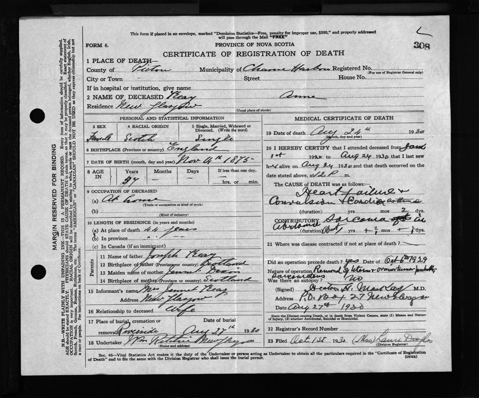Nova Scotia Archives — https://archives.novascotia.ca/vital-statistics/death/?ID=264007