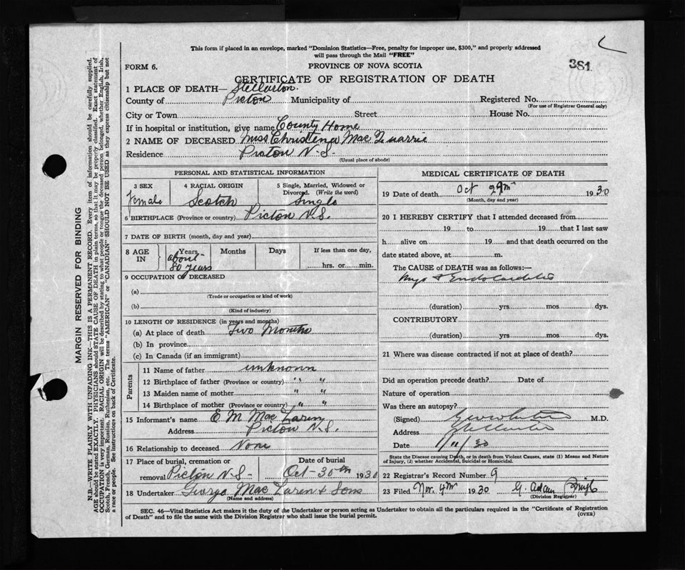 Nova Scotia Archives — https://archives.novascotia.ca/vital-statistics/death/?ID=264080