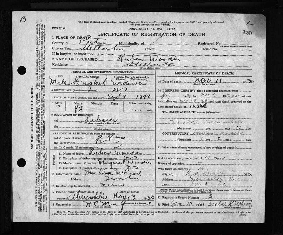 Nova Scotia Archives — https://archives.novascotia.ca/vital-statistics/death/?ID=264119