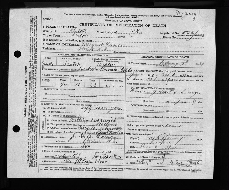 Nova Scotia Archives — https://archives.novascotia.ca/vital-statistics/death/?ID=264263