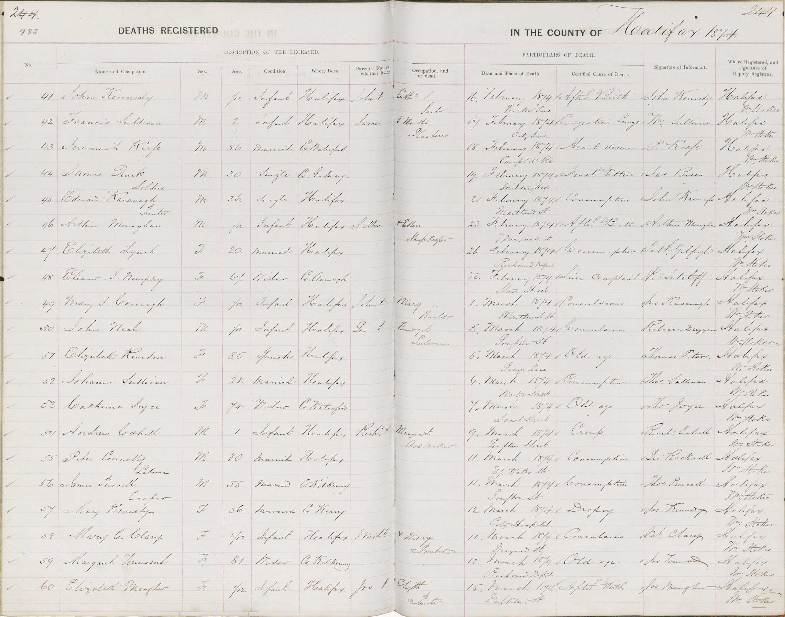Death Registration: Year: 1874 book: 1808 page: 485 number: 41
