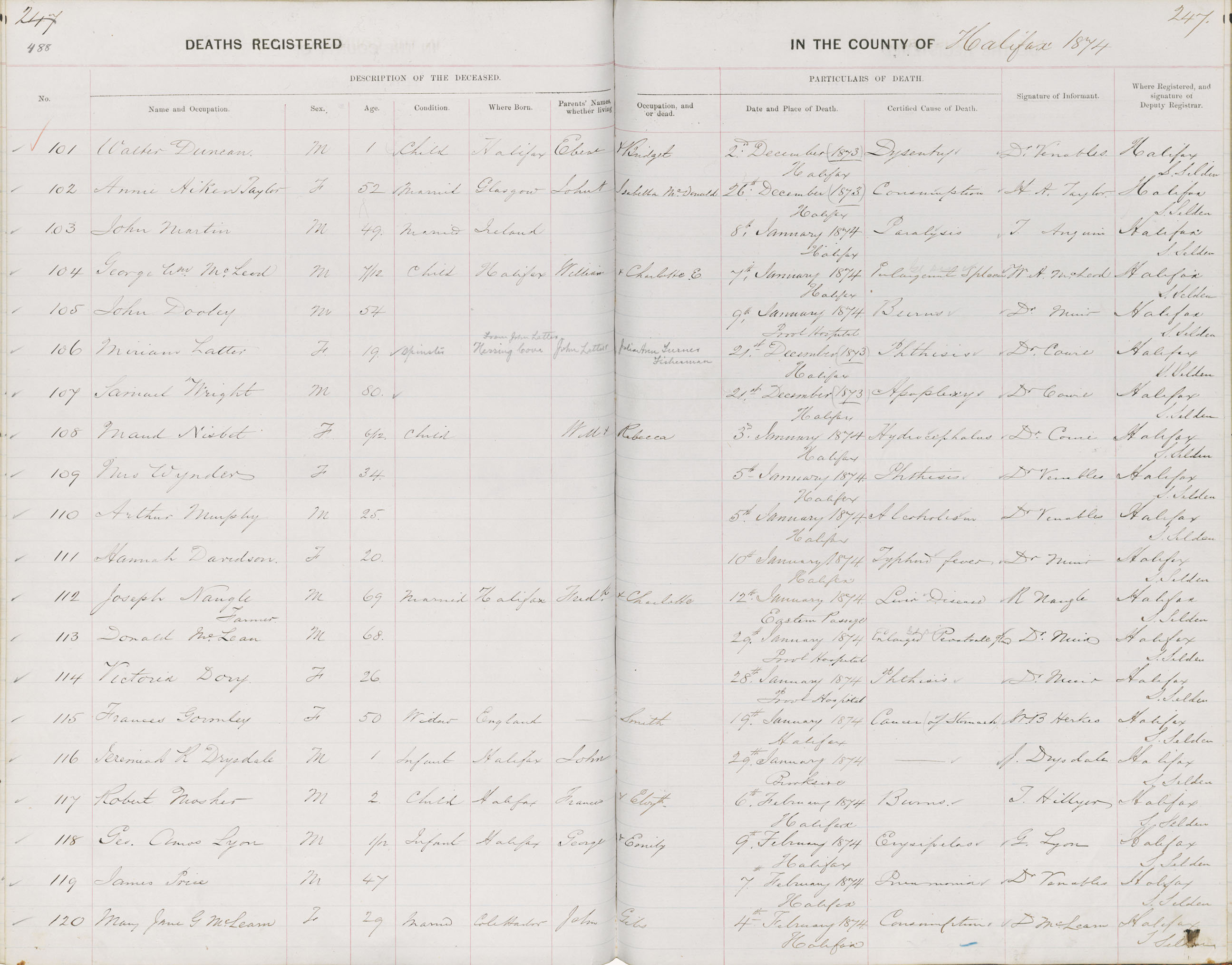 Death Registration: Year: 1874 book: 1808 page: 488 number: 101