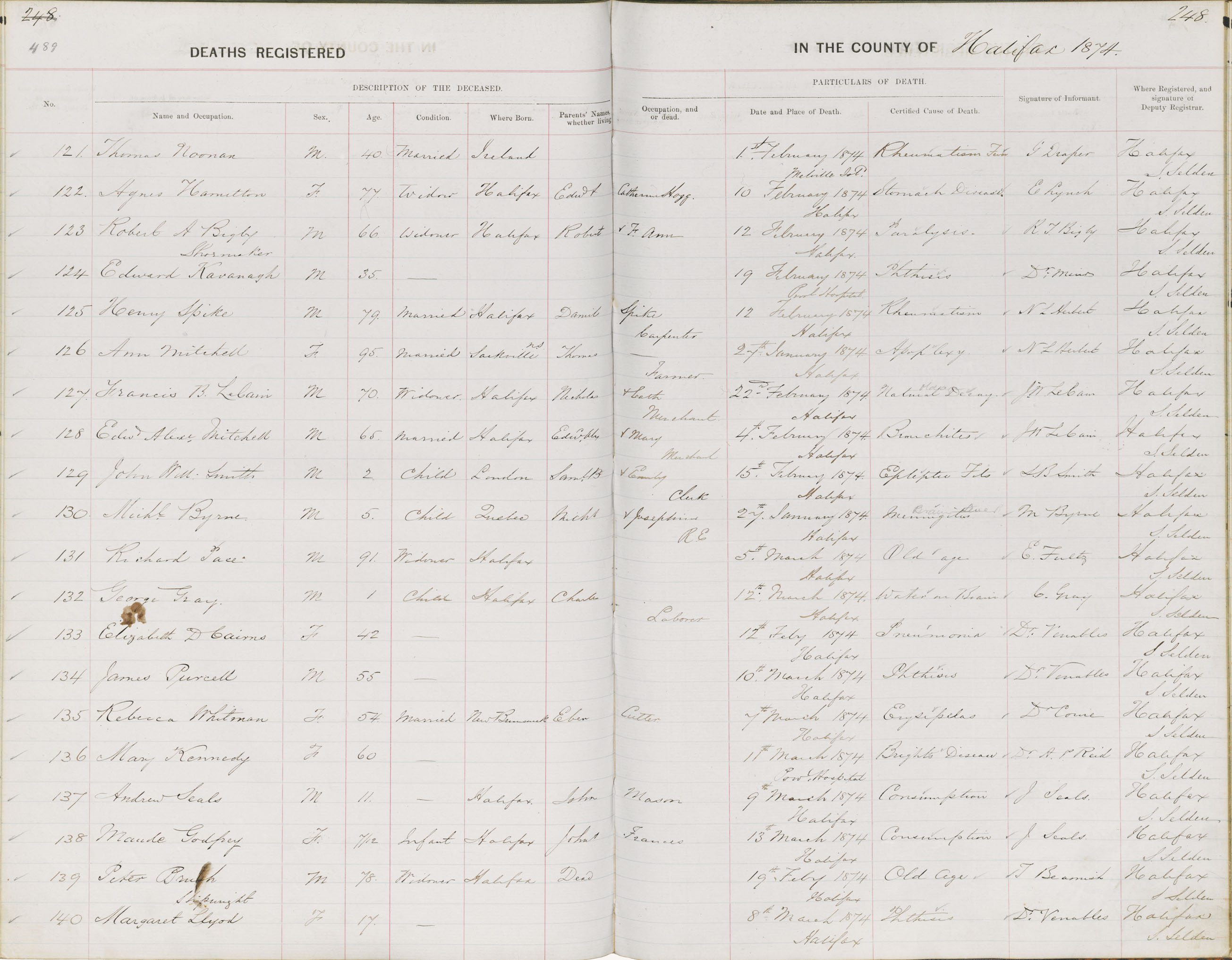 Death Registration: Year: 1874 book: 1808 page: 489 number: 121