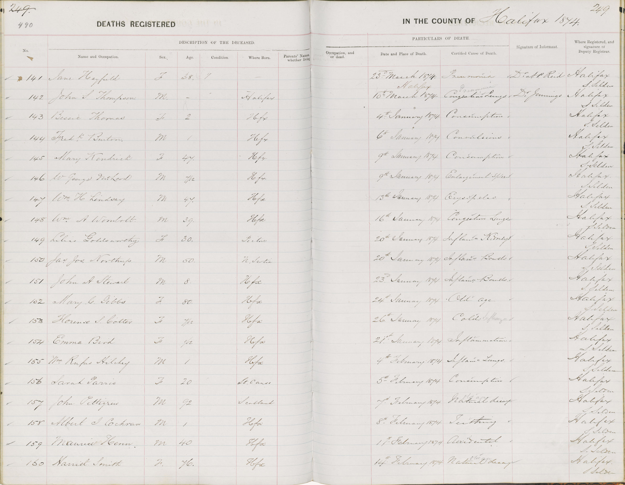 Death Registration: Year: 1874 book: 1808 page: 490 number: 141