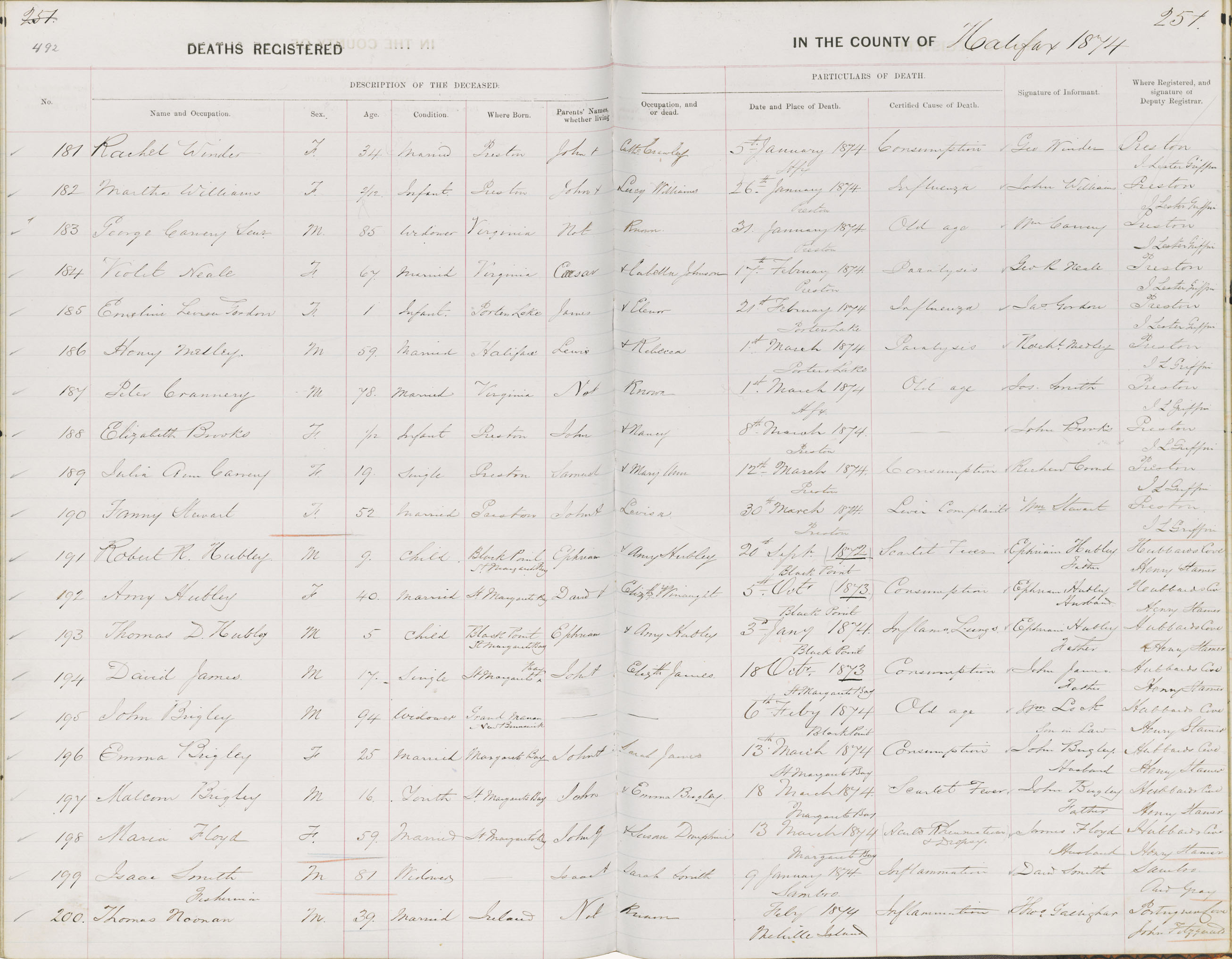 Death Registration: Year: 1874 book: 1808 page: 492 number: 181