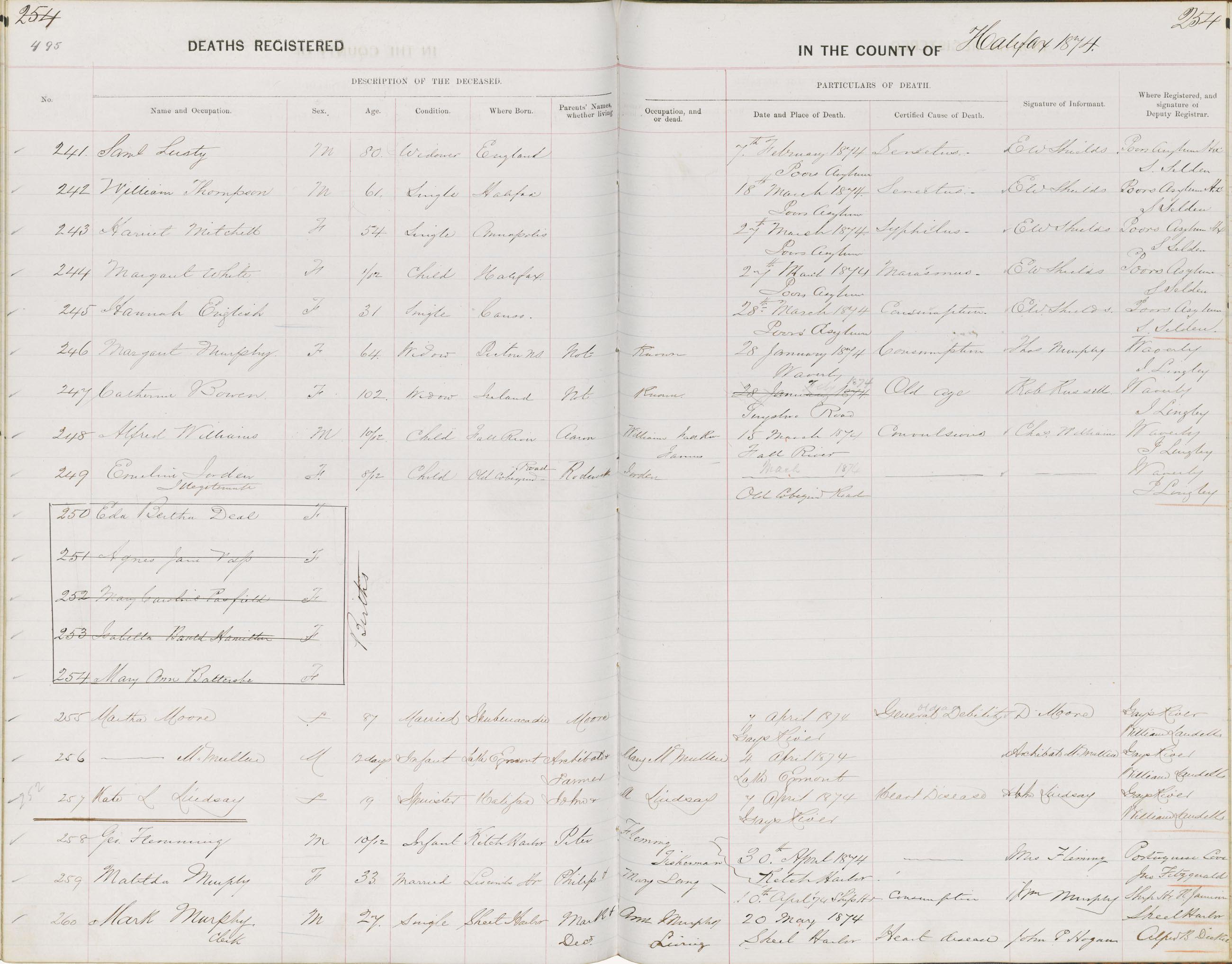 Death Registration: Year: 1874 book: 1808 page: 495 number: 241