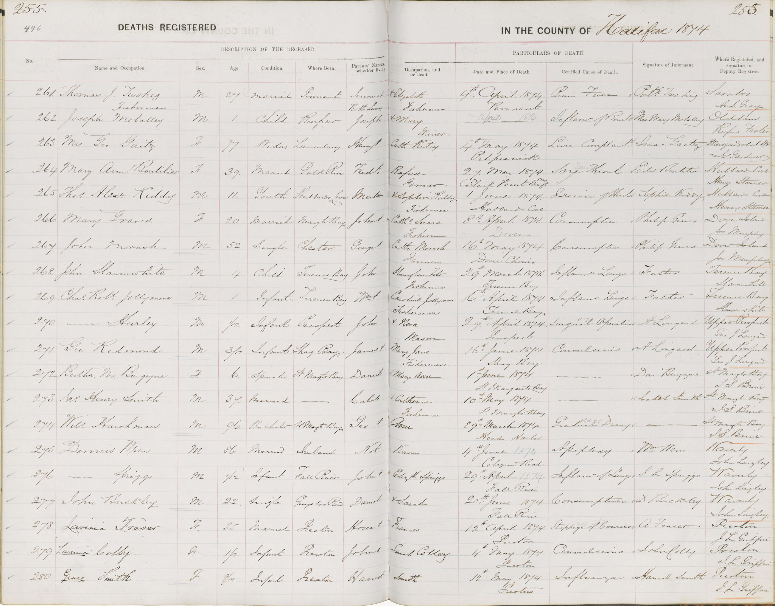 Death Registration: Year: 1874 book: 1808 page: 496 number: 261