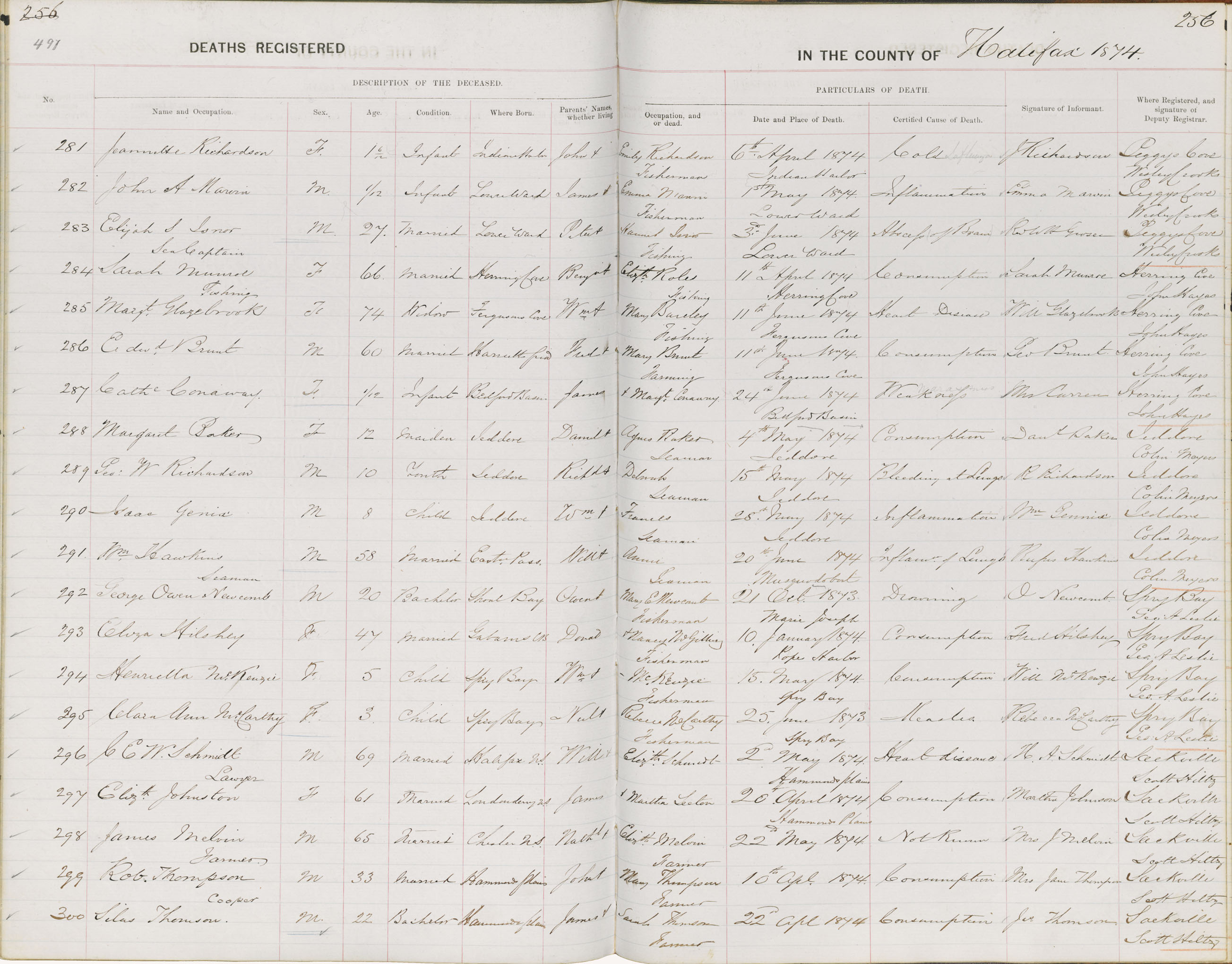 Death Registration: Year: 1874 book: 1808 page: 497 number: 281