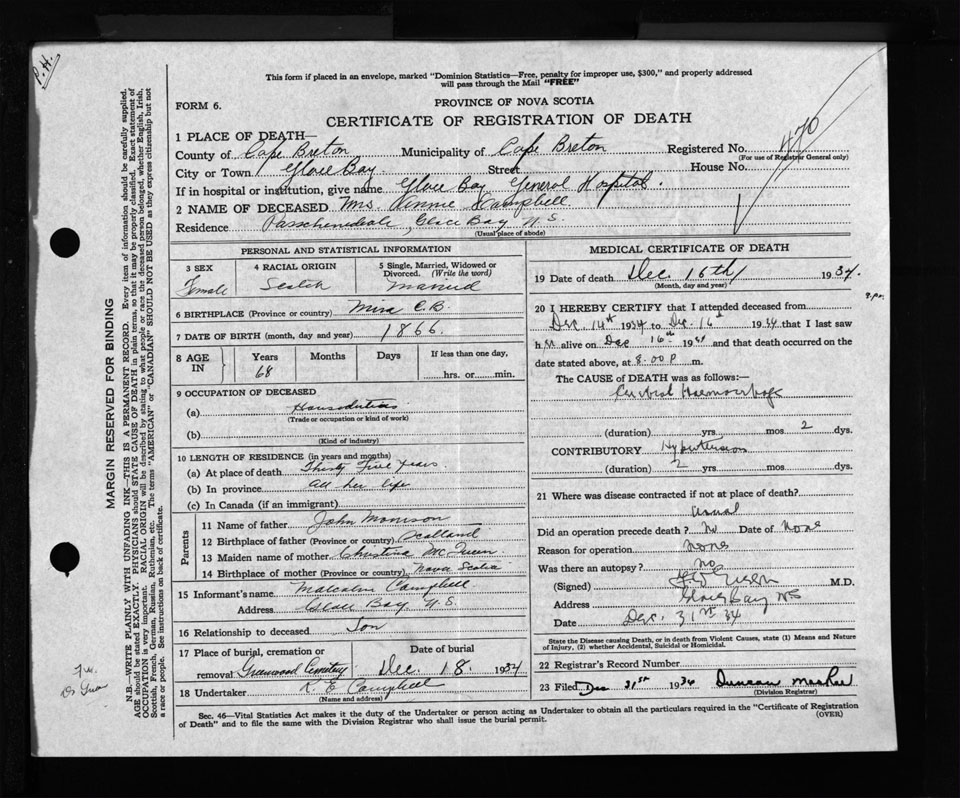 Nova Scotia Archives — https://archives.novascotia.ca/vital-statistics/death/?ID=276016
