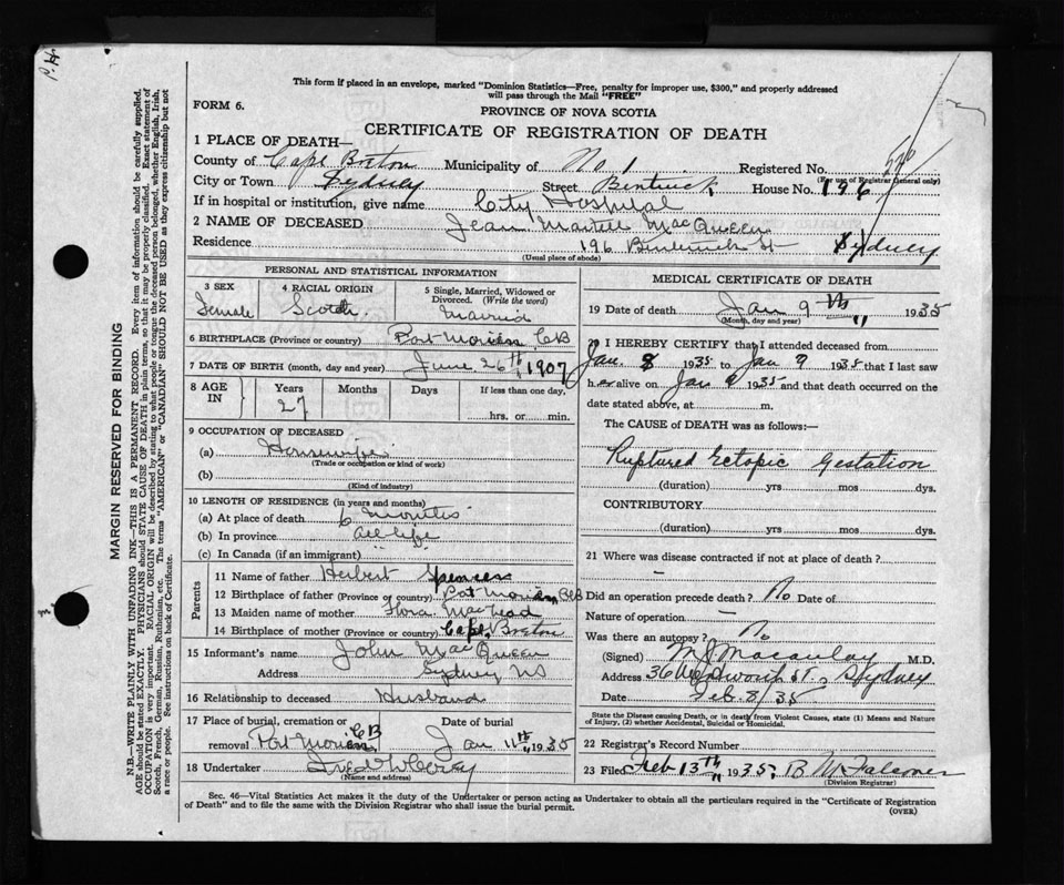 Nova Scotia Archives — https://archives.novascotia.ca/vital-statistics/death/?ID=276067
