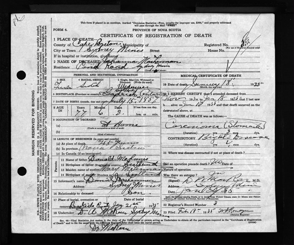 Nova Scotia Archives — https://archives.novascotia.ca/vital-statistics/death/?ID=276099