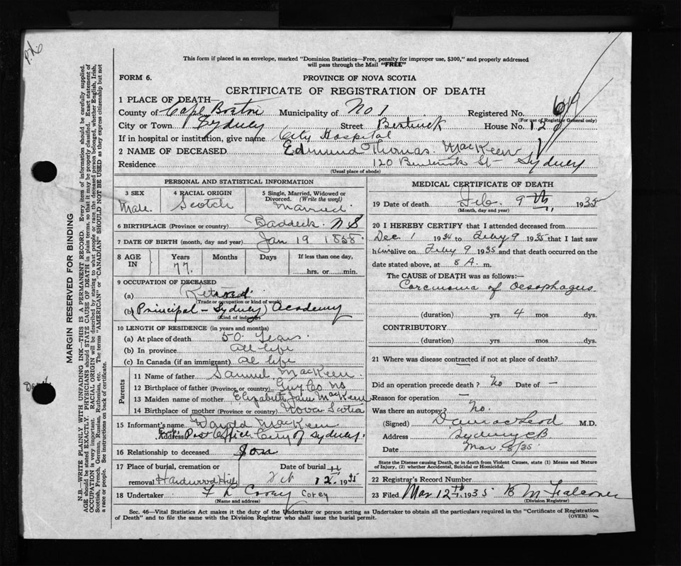 Nova Scotia Archives — https://archives.novascotia.ca/vital-statistics/death/?ID=276166
