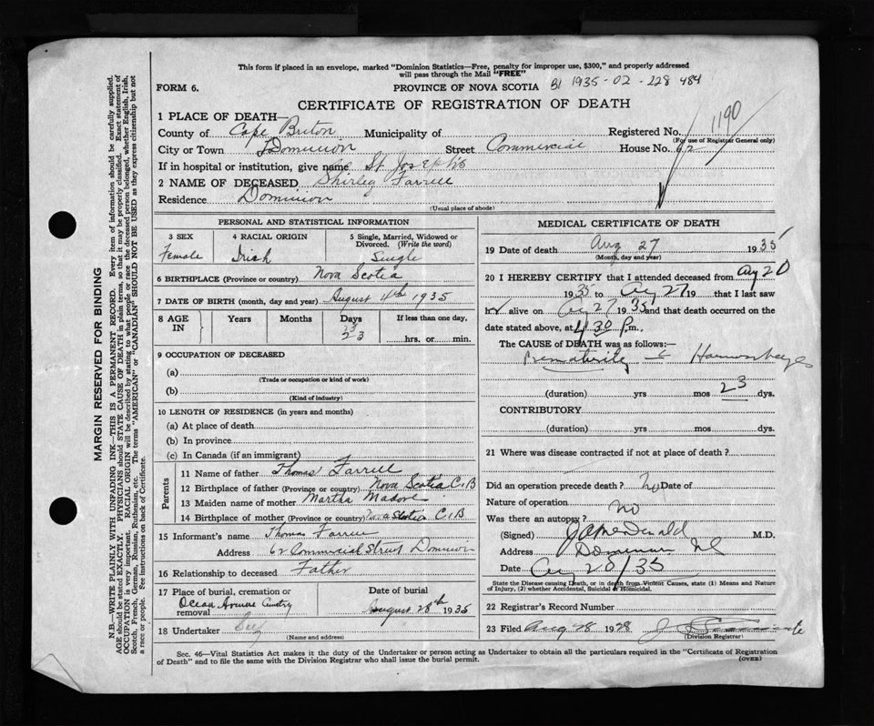 Nova Scotia Archives — https://archives.novascotia.ca/vital-statistics/death/?ID=276737