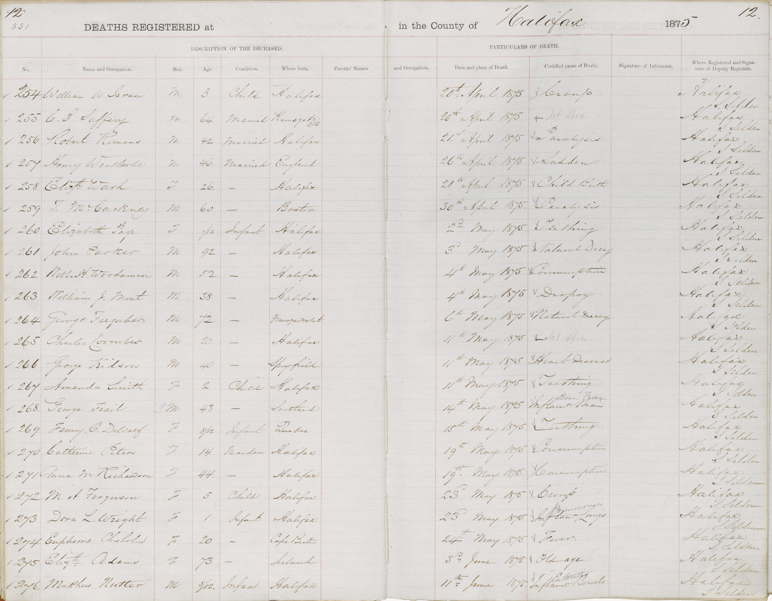 Death Registration: Year: 1875 book: 1808 page: 551 number: 254